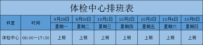 体检中心排班表