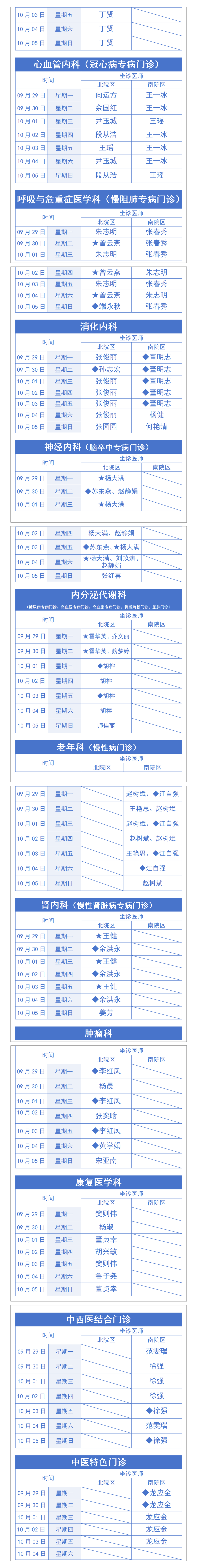 ★符号为主任医师◆符号为副主任医师