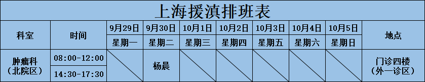 上海援滇专家排班表