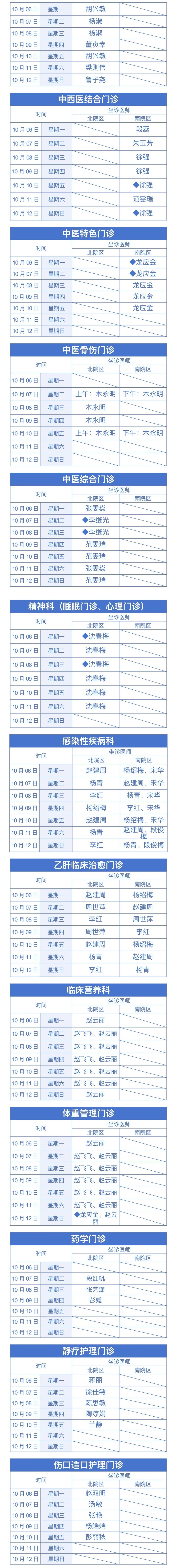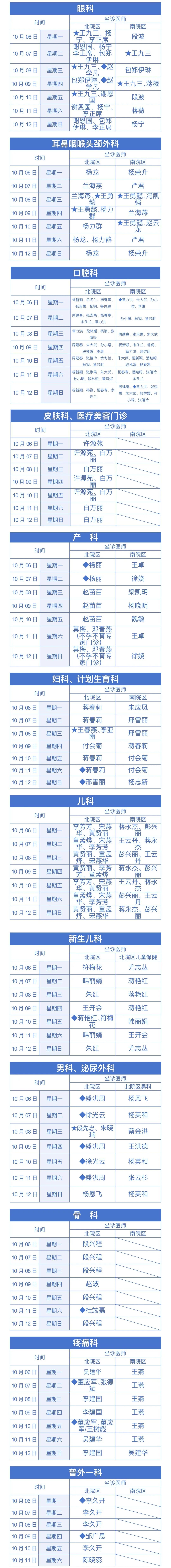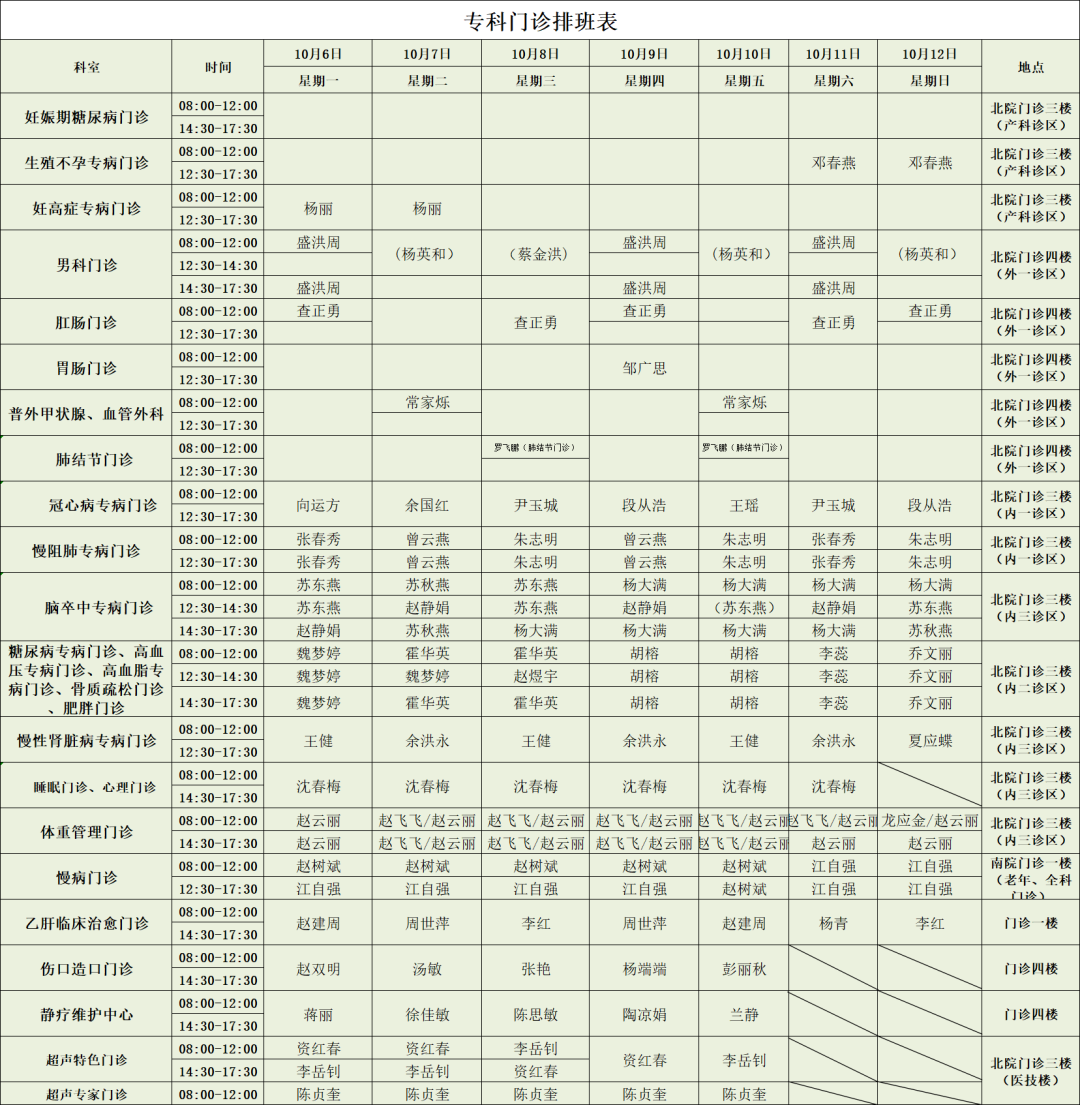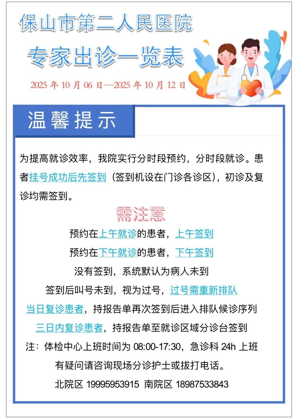 必收藏︱保山市二院新、老院区10月6日—10月12日门诊出诊表