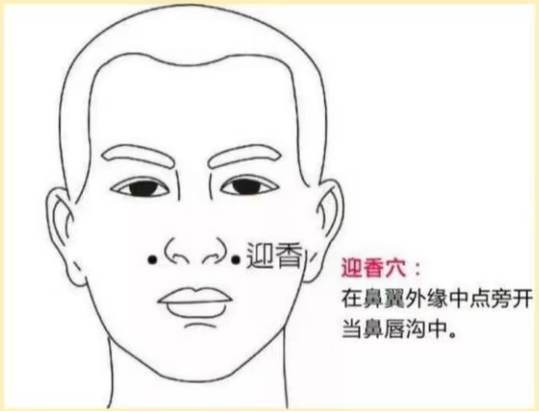 按揉迎香穴(鼻翼两侧)可疏通鼻窍,防秋燥;