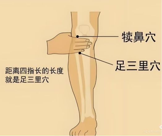 每天按揉足三里穴(外膝眼下四横指处)5分钟,能强健脾胃;
