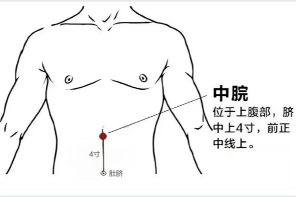 按揉中脘(上腹部,前正中线上,当脐中上4寸)、天枢穴(位于腹部,横平脐中,前正中线旁开2寸),可和胃健脾。