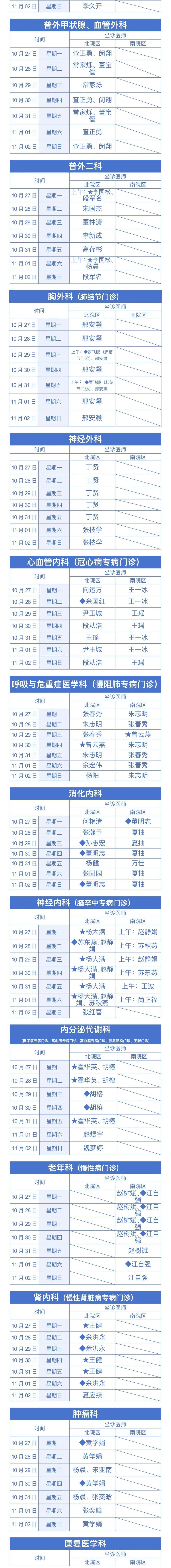 除感染性疾病科,中医科,精神科门诊,耳鼻咽喉头颈外科午间门诊停诊外,其余科室均开展午间门诊;北院区暂未开展夜间门诊。