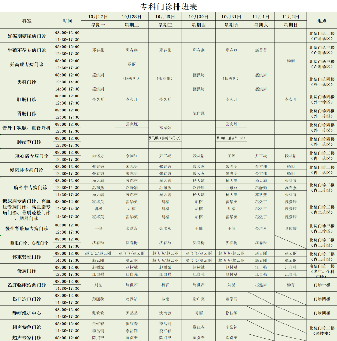 注:非门诊开诊时间段,可到相关疾病科室住院部看诊。