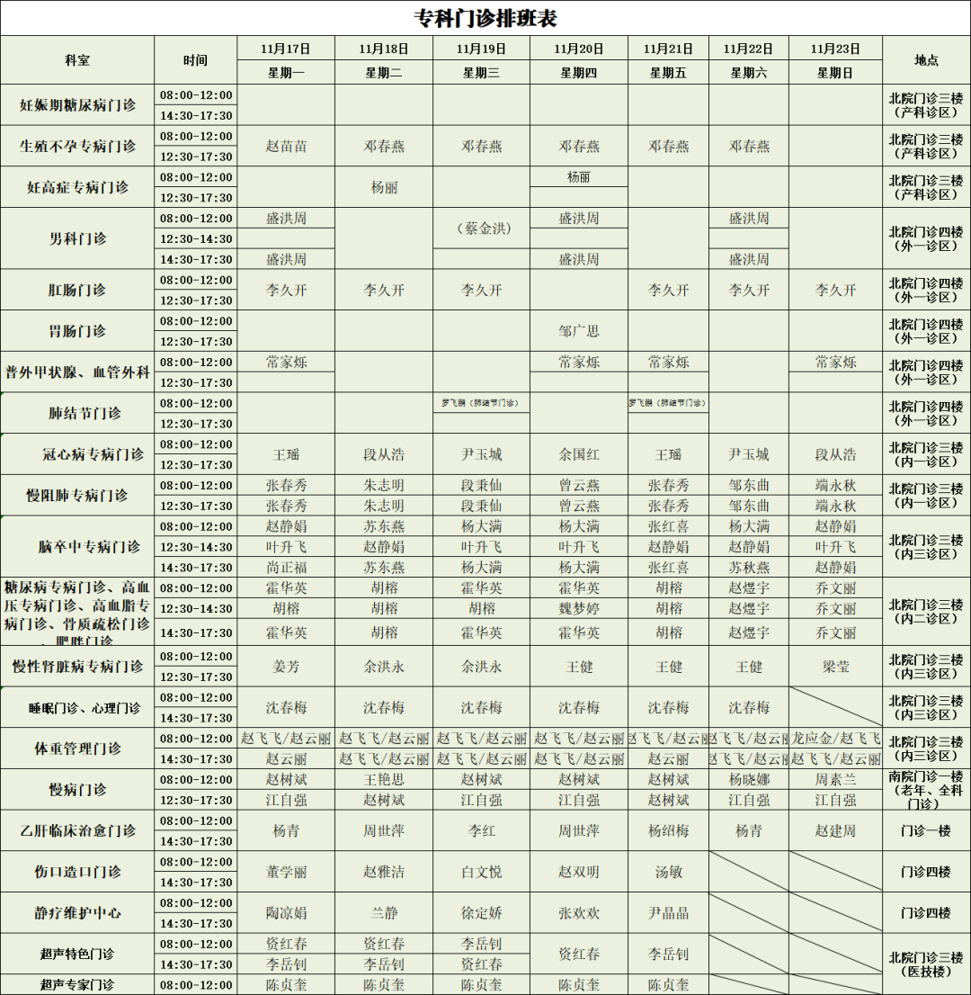 除感染性疾病科,中医科,精神科门诊,耳鼻咽喉头颈外科午间门诊停诊外,其余科室均开展午间门诊;北院区暂未开展夜间门诊。