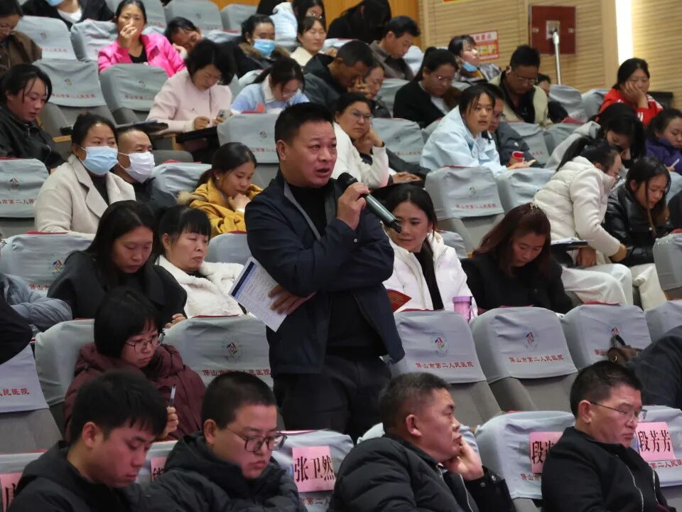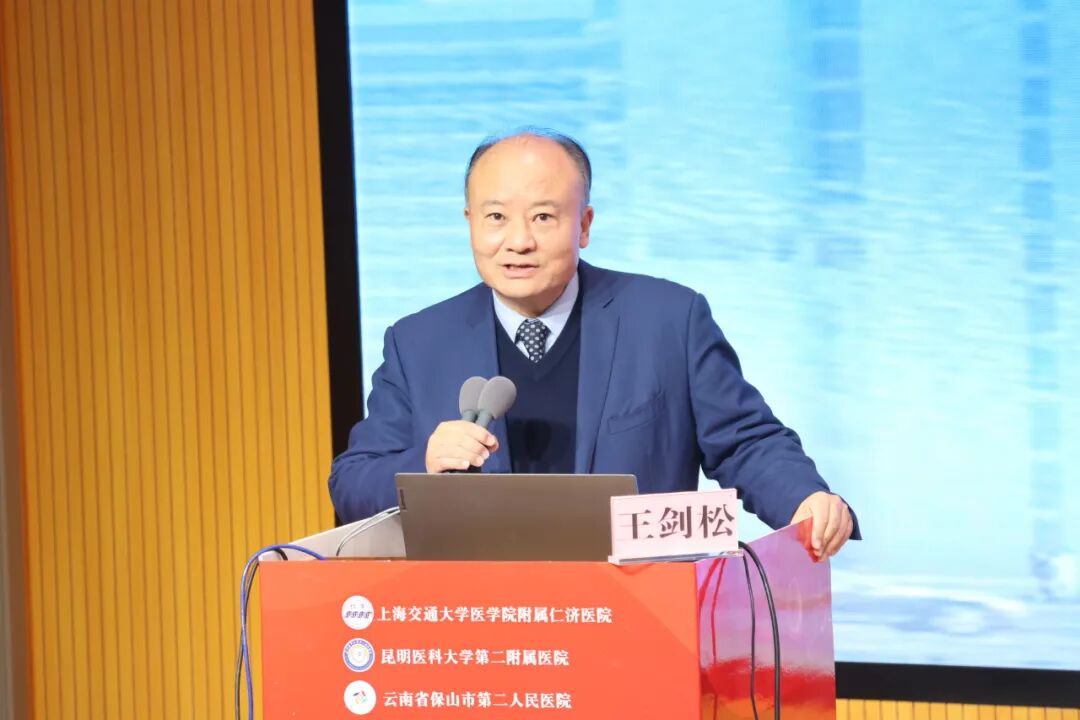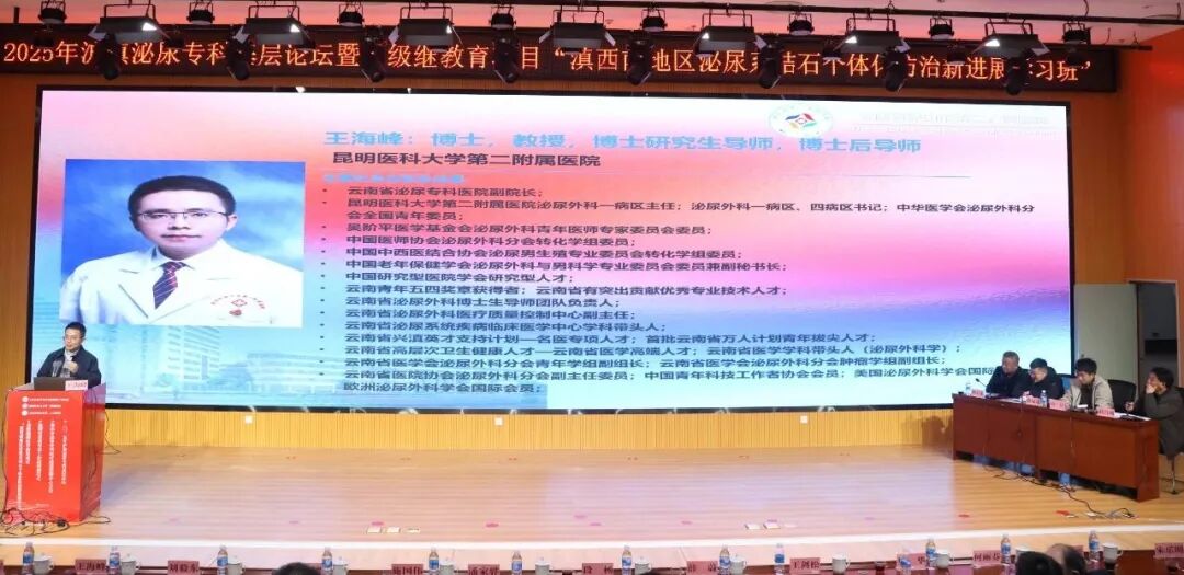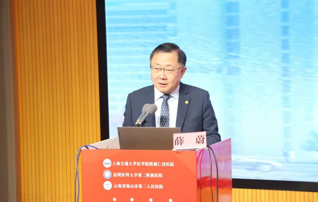 上海市医学会泌尿外科分会主任委员薛蔚教授讲话,他表示,沪滇合作是历史悠久的重要项目,不仅搭建了两地医疗资源共享的桥梁,更凝结了深厚的情谊。每一次来到保山都能感受到这里医疗事业的蓬勃发展,特别是保山市二院搬迁新院区后,整体医疗水平提升显著。保山市二院泌尿外科在王剑松主任带领下,现已得到全国泌尿外科同仁的认可未来,上海专家团队将继续发挥专业优势,加强与云南地区的学术交流与合作研究,助力培养更多扎根边疆、服务基层的泌尿外科人才,共同推动区域泌尿学科迈向更高水平。
