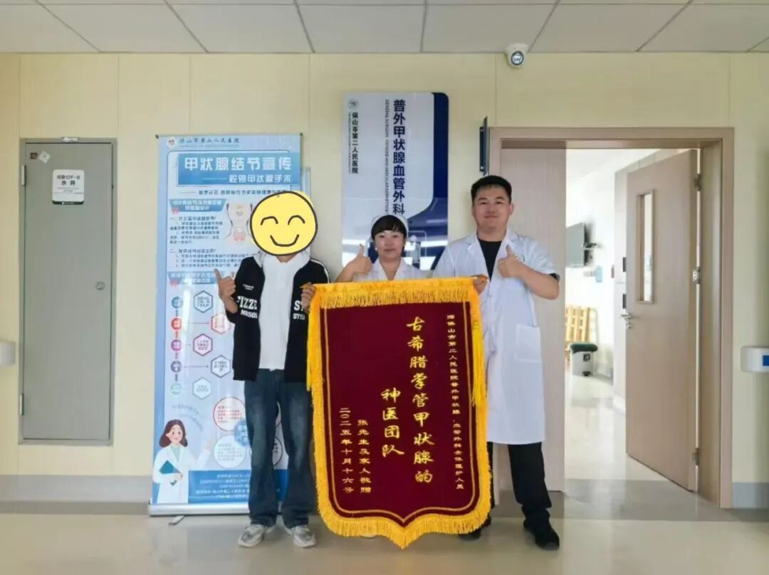 近日,保山市二院普外甲状腺、血管外科收到一面印有“古希腊掌管甲状腺的神医团队!”的特别锦旗 ,这句俏皮又真挚的话语,代表患者张大哥(化名)对医护团队最暖心的致谢和实力的高度认可。