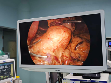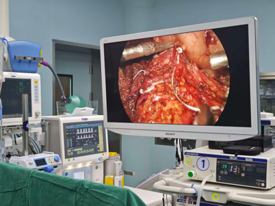 手术中,吴涛主任带领科室团队展开精密操作。在腹腔镜的高清视野下,手术团队如同进行“微观雕刻”,凭借对胰腺解剖结构的深刻认知和微创技巧,将胰腺病变组织与脾血管逐一分离。经过数小时通力协作,将胰腺病变组织被完整切除,顺利完成手术,患者腹部仅留下数个微小孔状疤痕,术中出血极少。
