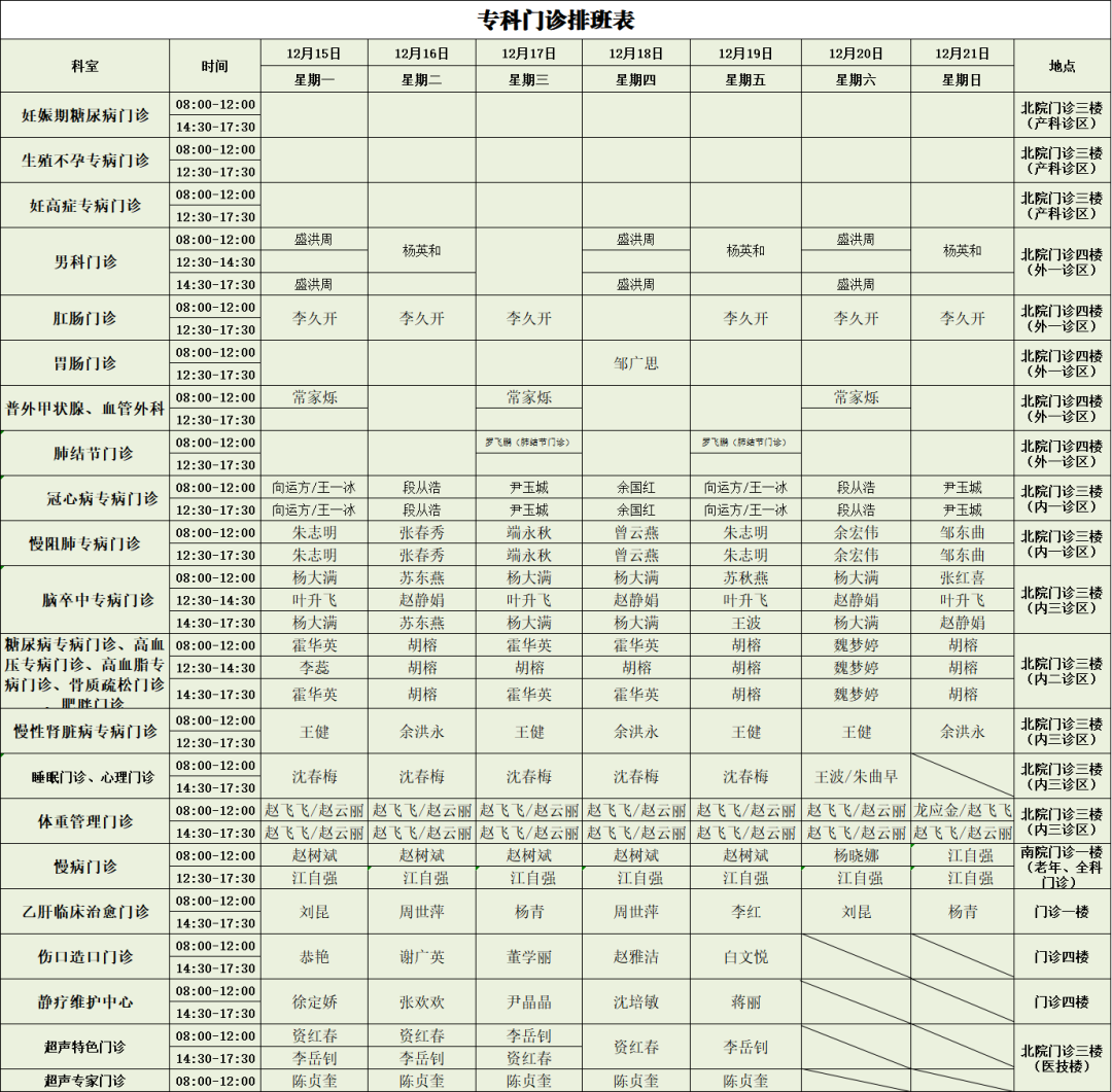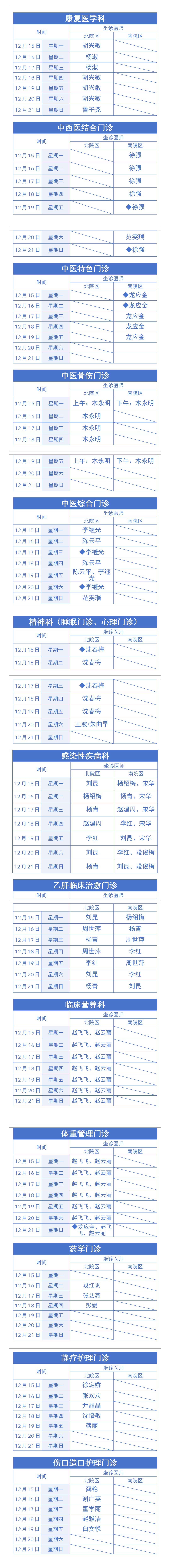 除感染性疾病科,中医科,精神科门诊,耳鼻咽喉头颈外科午间门诊停诊外,其余科室均开展午间门诊;北院区暂未开展夜间门诊。