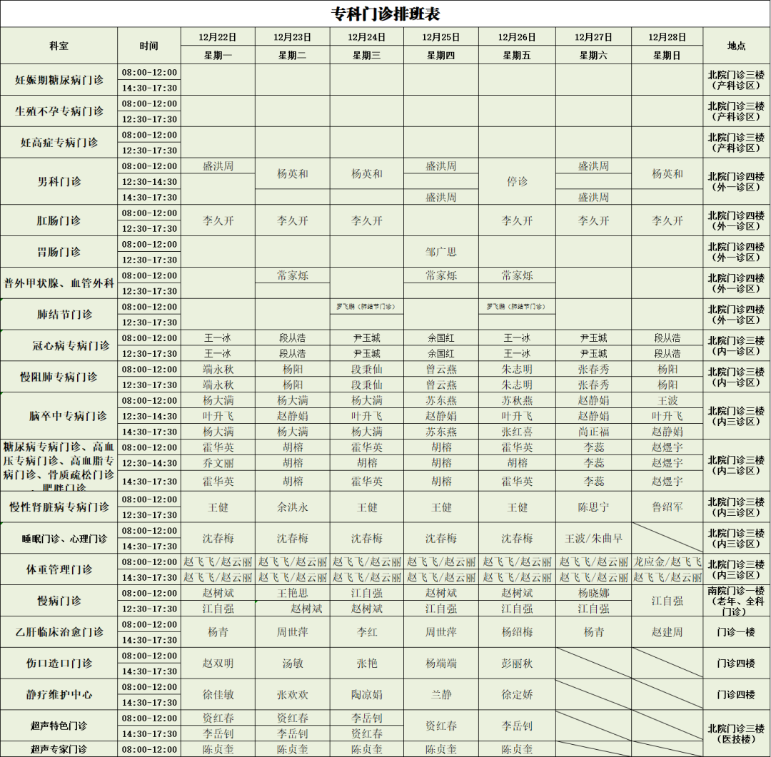 注:非门诊开诊时间段,可到相关疾病科室住院部看诊。