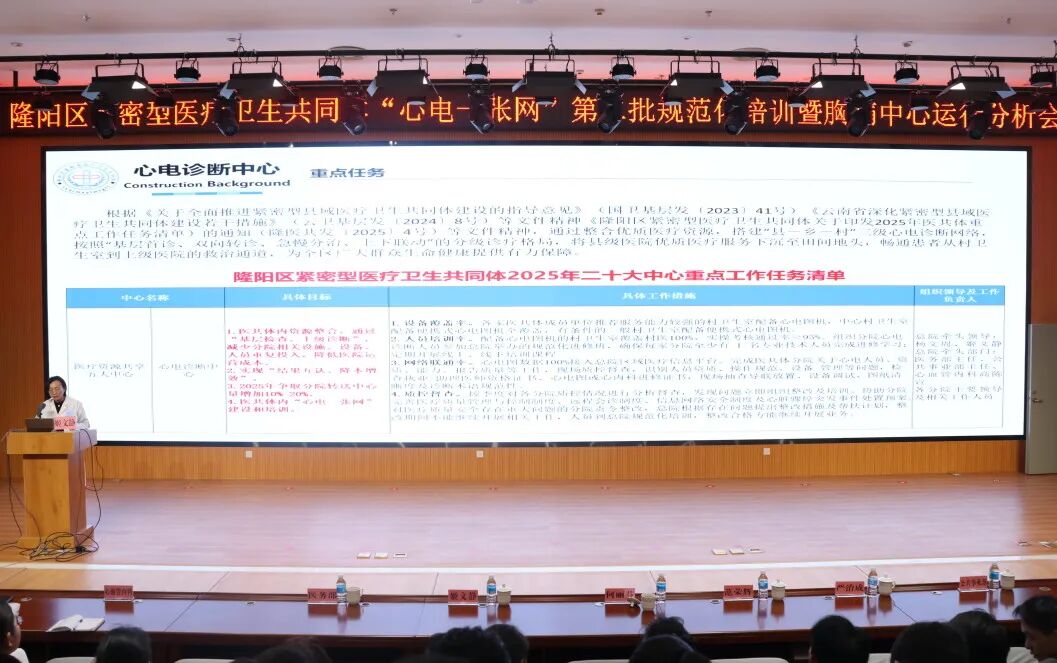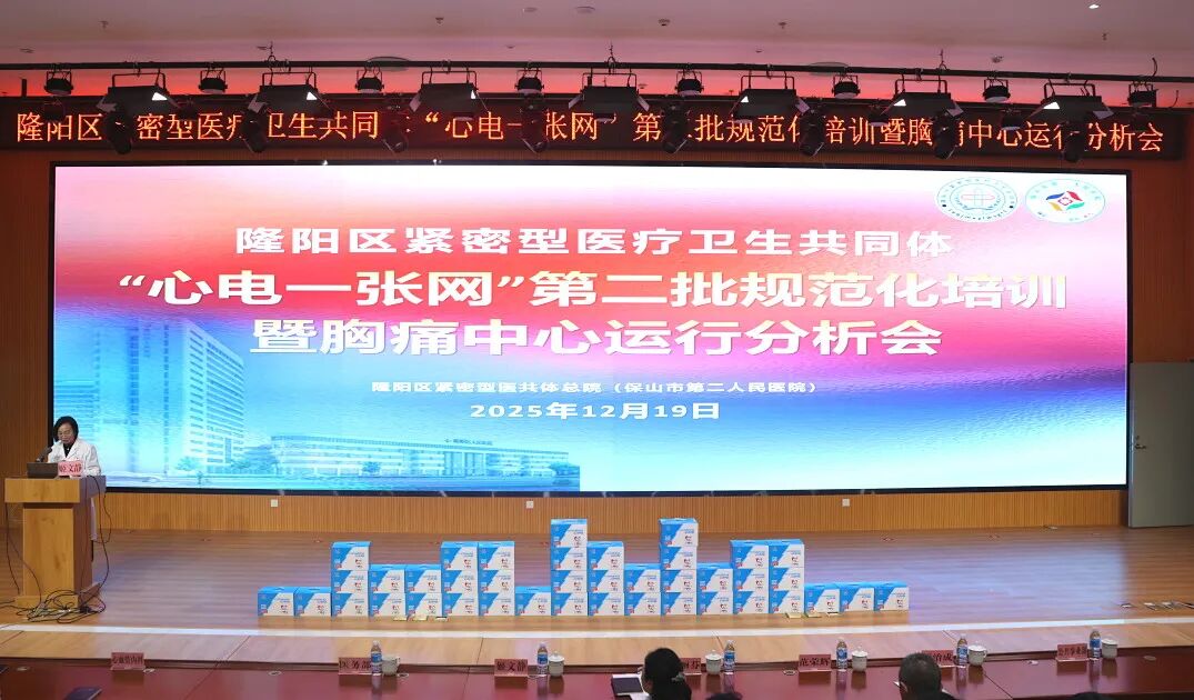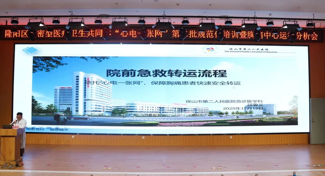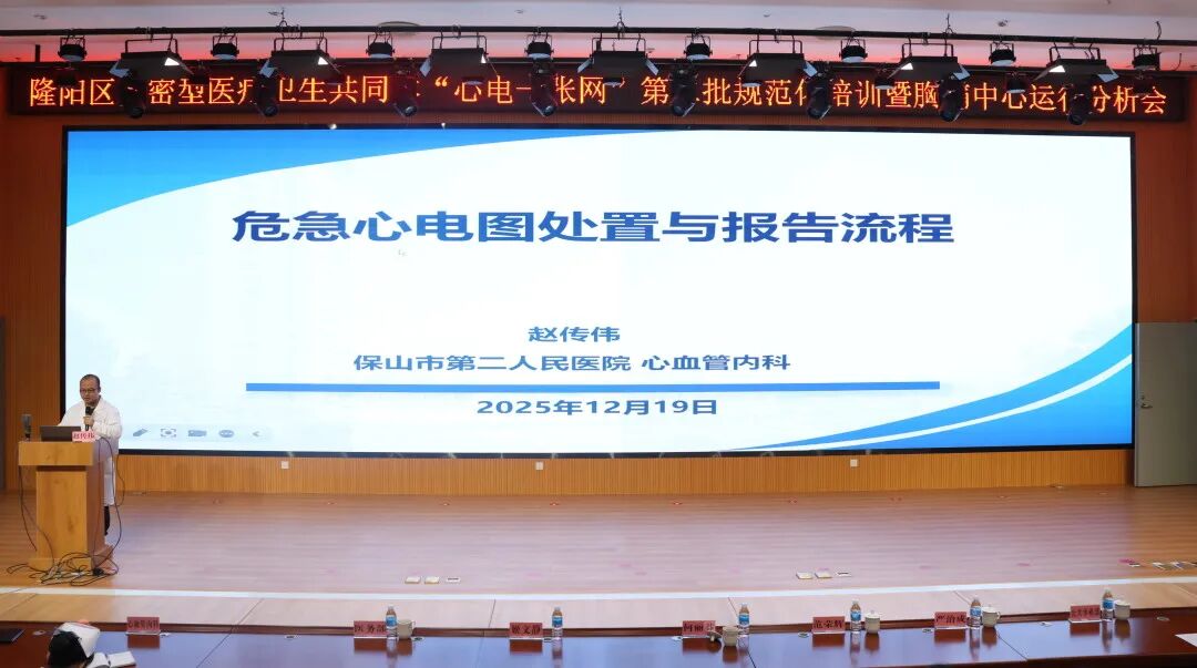 12月19日,隆阳区紧密型医共体“心电一张网”第二批规范化培训暨胸痛中心运行分析会在医共体总院(保山市二院)召开。区卫健局领导,隆阳区紧密型医共体总院、26家分院分管领导、相关负责人及第二批配备心电设备的40家村卫生室村医等90余人参会。
