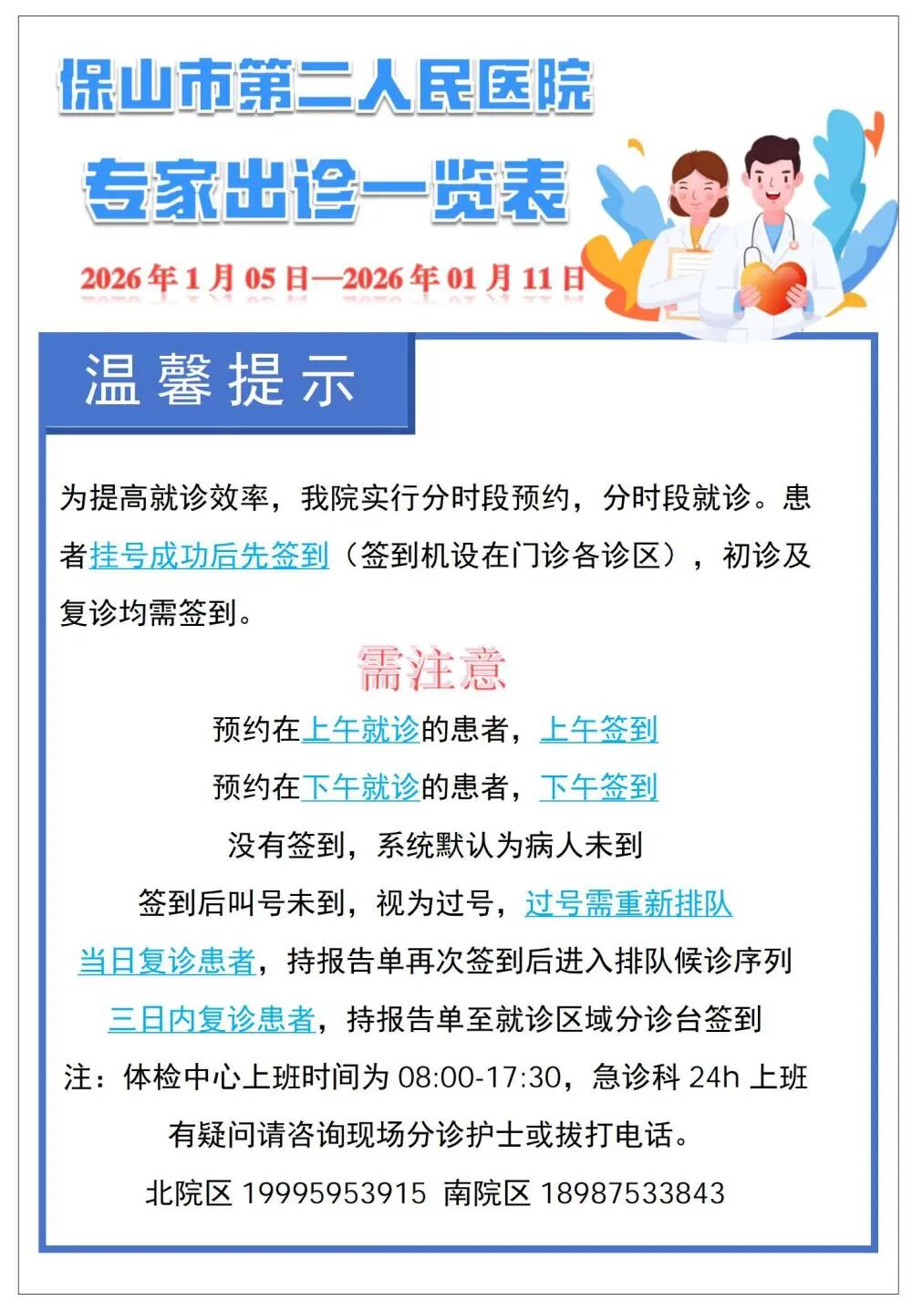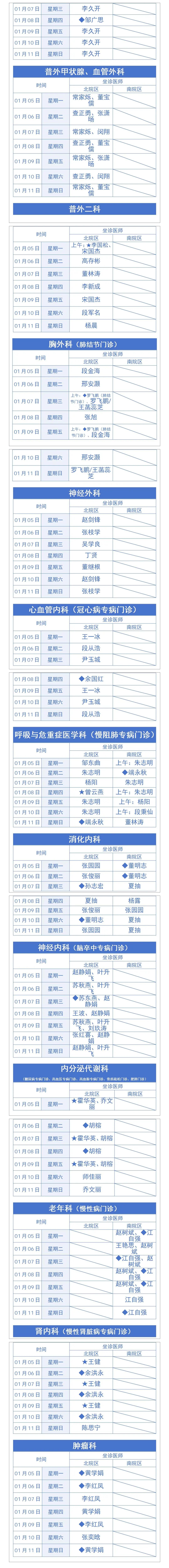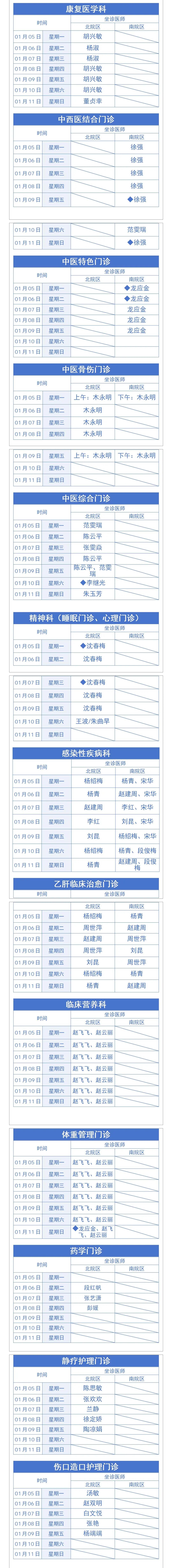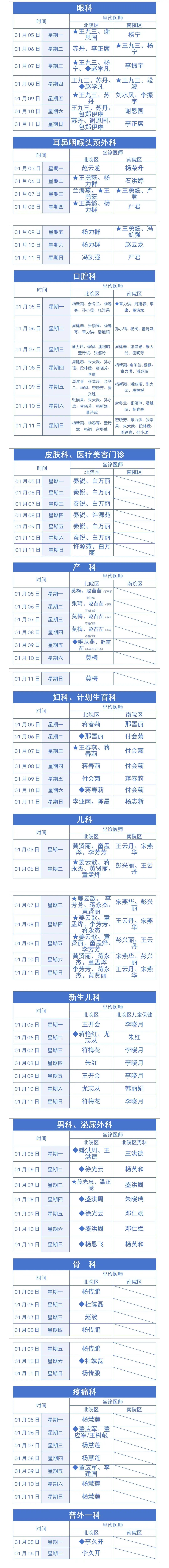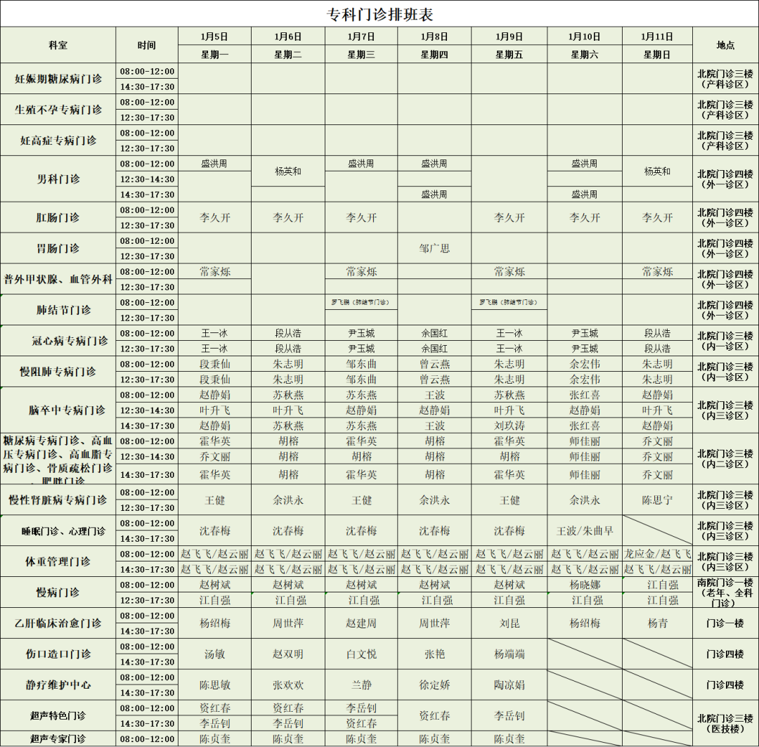 必收藏︱保山市二院新、老院区1月05日—1月11日门诊出诊表