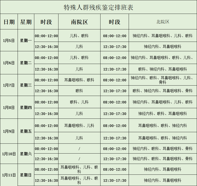 特殊人群残疾鉴定排班表