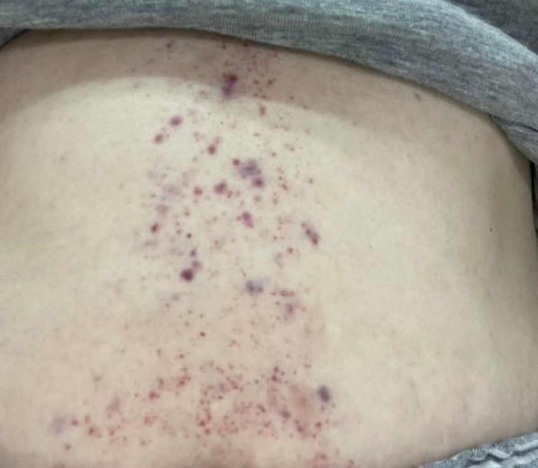 ★皮肤出现无诱因的紫色/暗红色瘀点、瘀斑,多分布在四肢,按压不褪色;