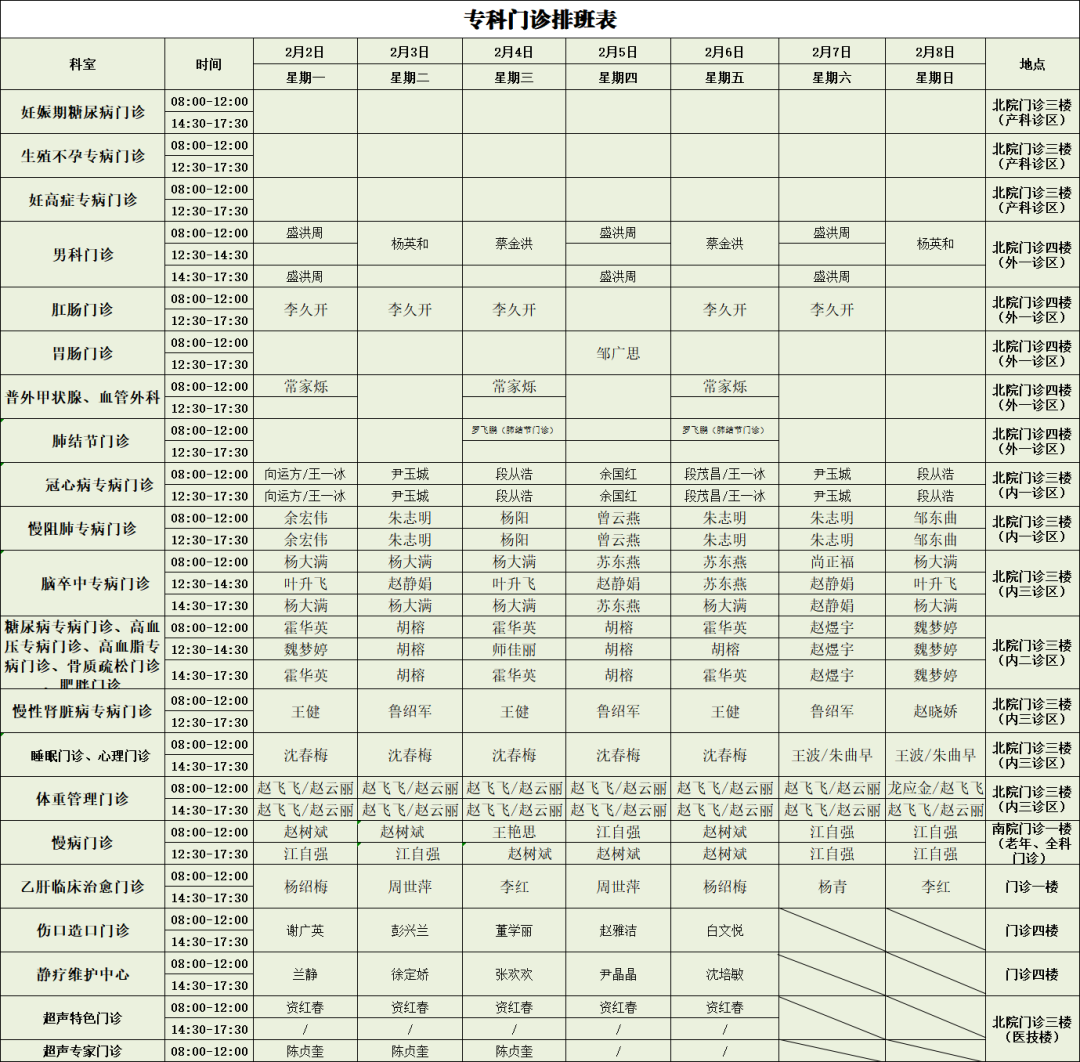 必收藏︱保山市二院新、老院区2月2日—2月8日门诊出诊表