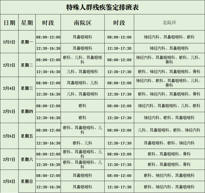 特殊人群残疾鉴定排班表