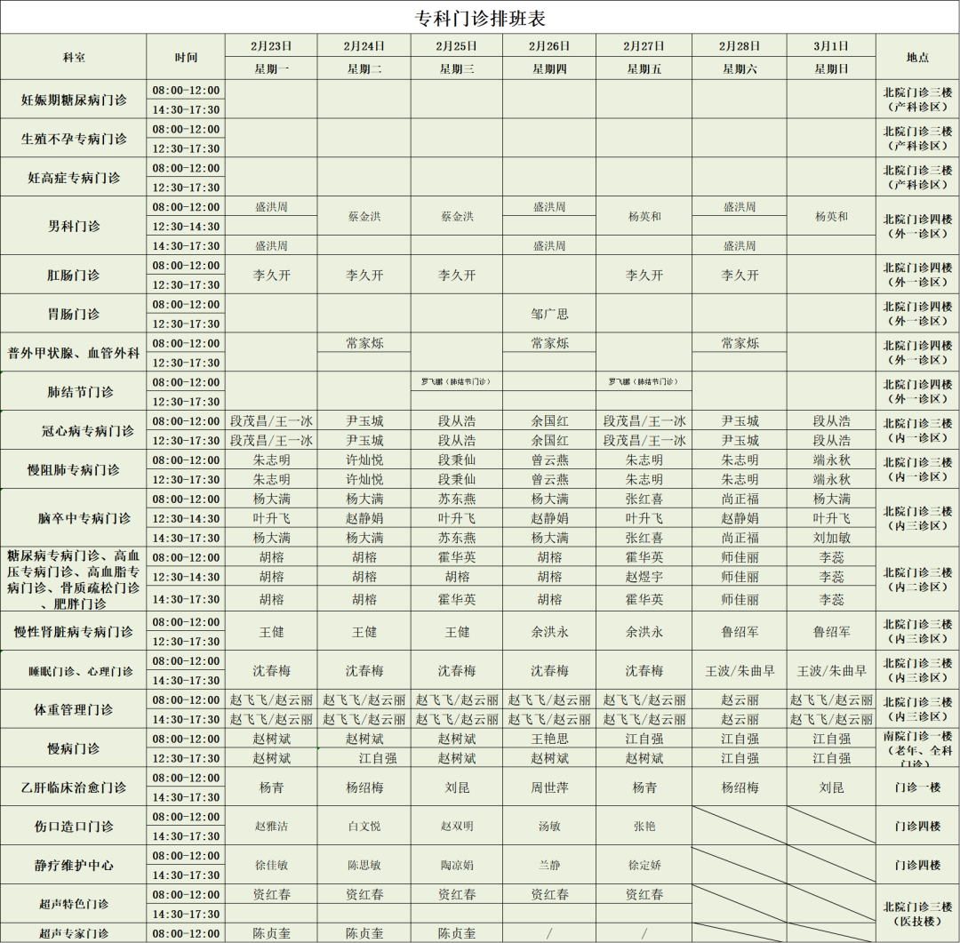 如有变动,以当日出诊为准