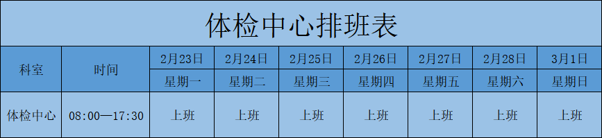 体检中心排班表