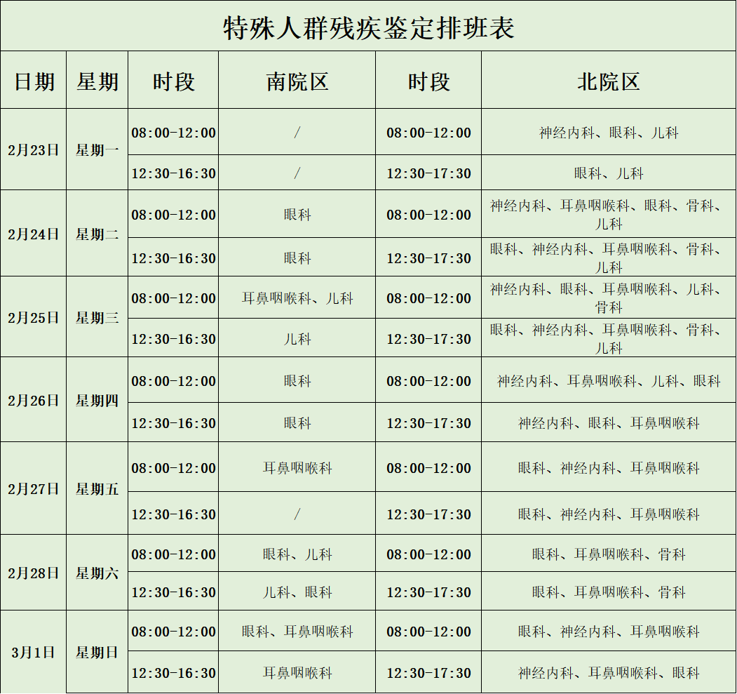 特殊人群残疾鉴定排班表