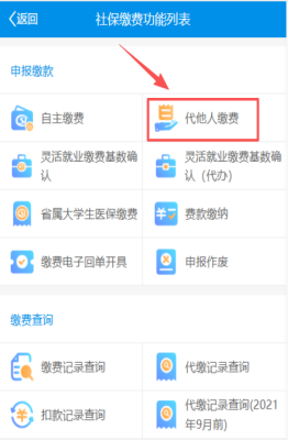找到“代他人缴费” 选项,输入缴费人相关信息;