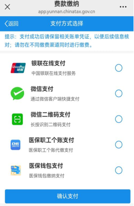在支付方式选择页面,勾选“医保职工个账支付”,即完成共济绑定人的个人账户代扣。
