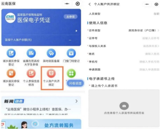 保山市职工医保个人账户资金可为在云南省范围内参保的家庭成员缴纳城乡居民基本医疗保险费,操作流程如下: