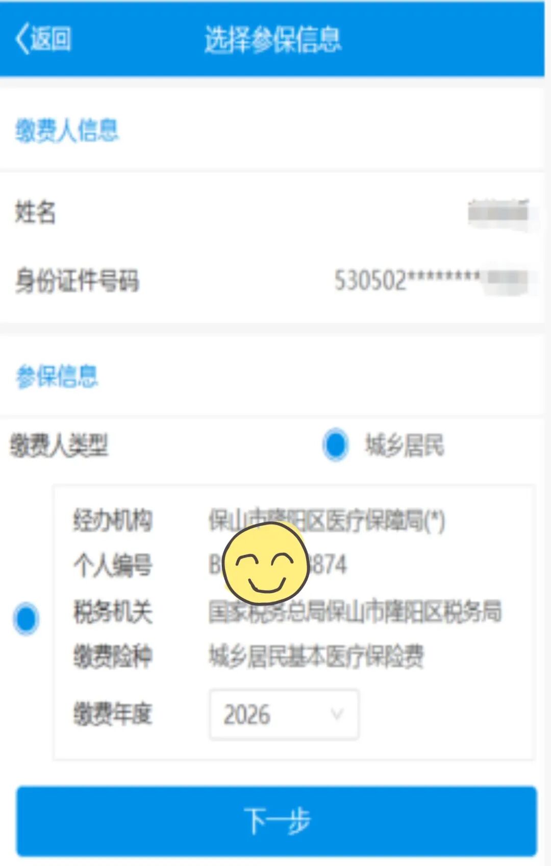 系统展示参保信息后,确认无误点击“下一步”,进入缴费信息确认页面再次核对,继续点击“下一步”;