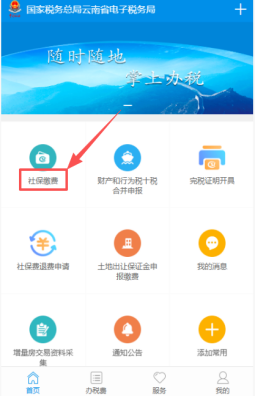 搜索并关注“云南省电子税务局” 微信公众号,点击“业务办理”,选择“社保缴费”;