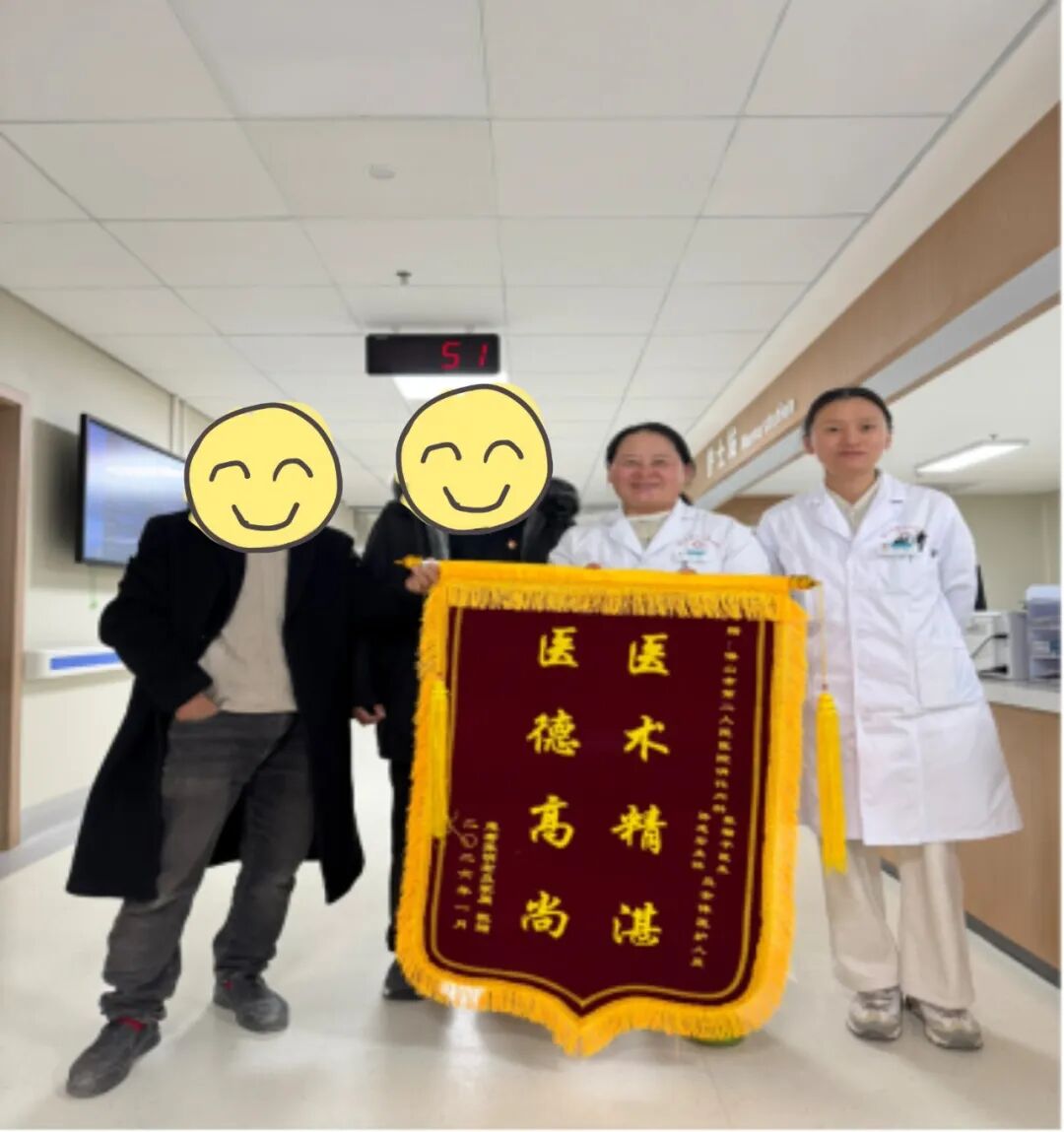 出院当天,老人和家属特意定制锦旗,亲手送到医护人员手中。家属激动地说:“老人被病痛折磨了这么久,是你们用专业的治疗和用心的照顾,让他重新找回了生活质量,我们特别感谢。”